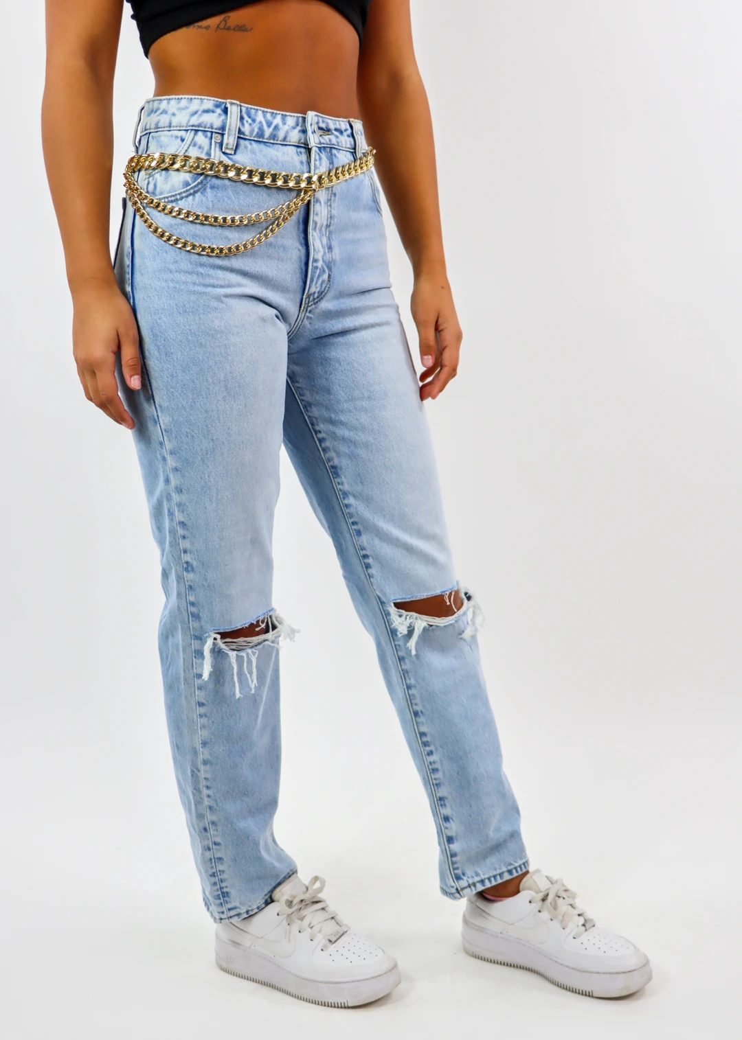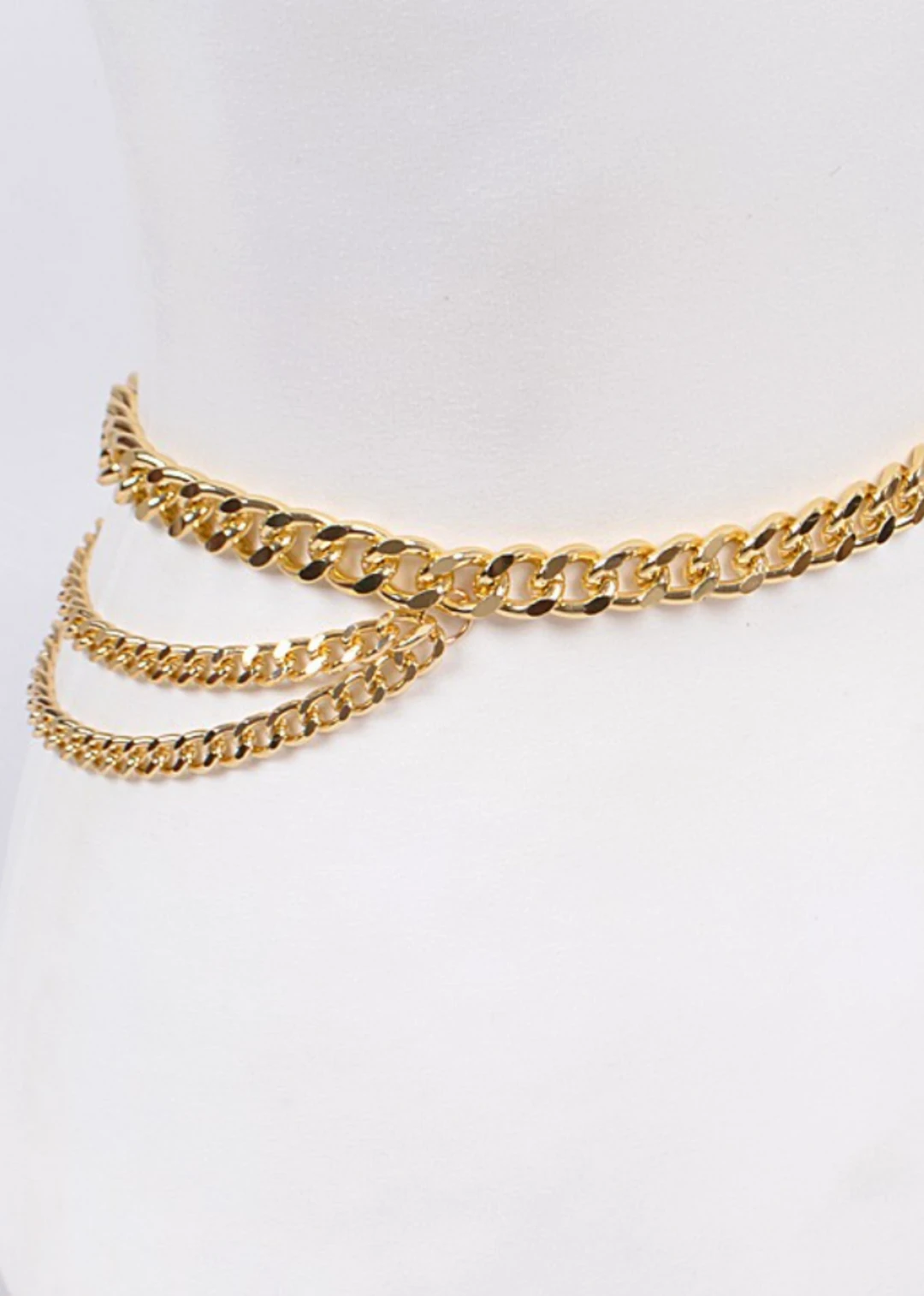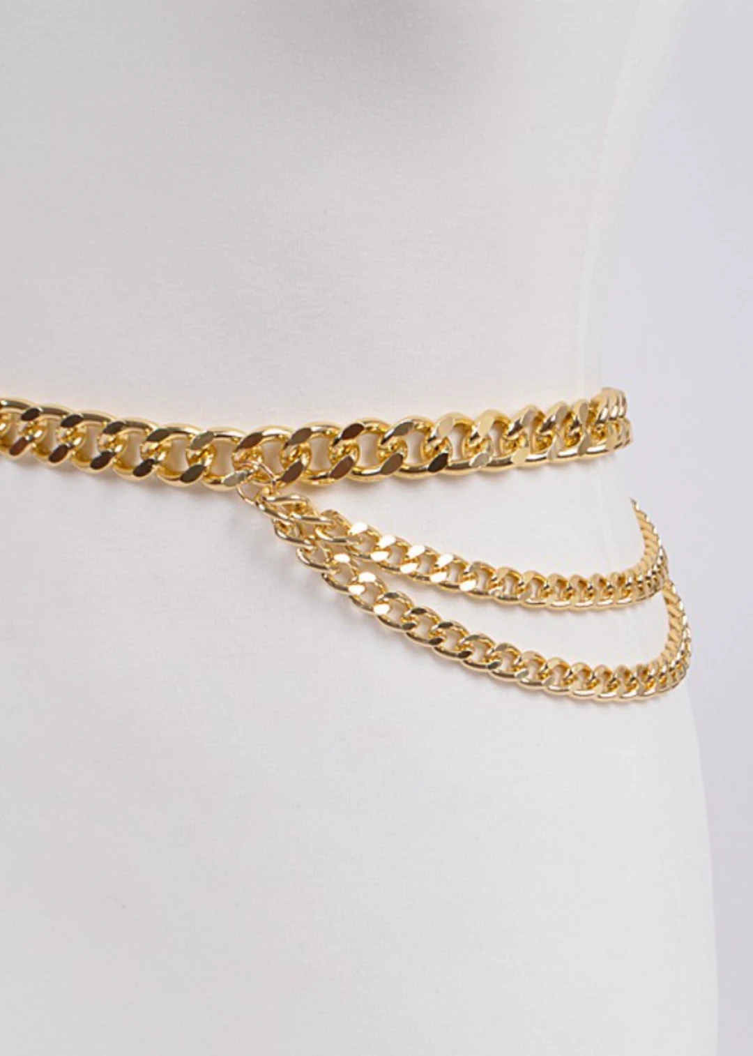 We are obsessed with this gold layered chain belt! It is the perfect piece to spice up any outfit. Pair it with a pair of jeans or a skirt for the ultimate cutest outfit. We know you will rock it!