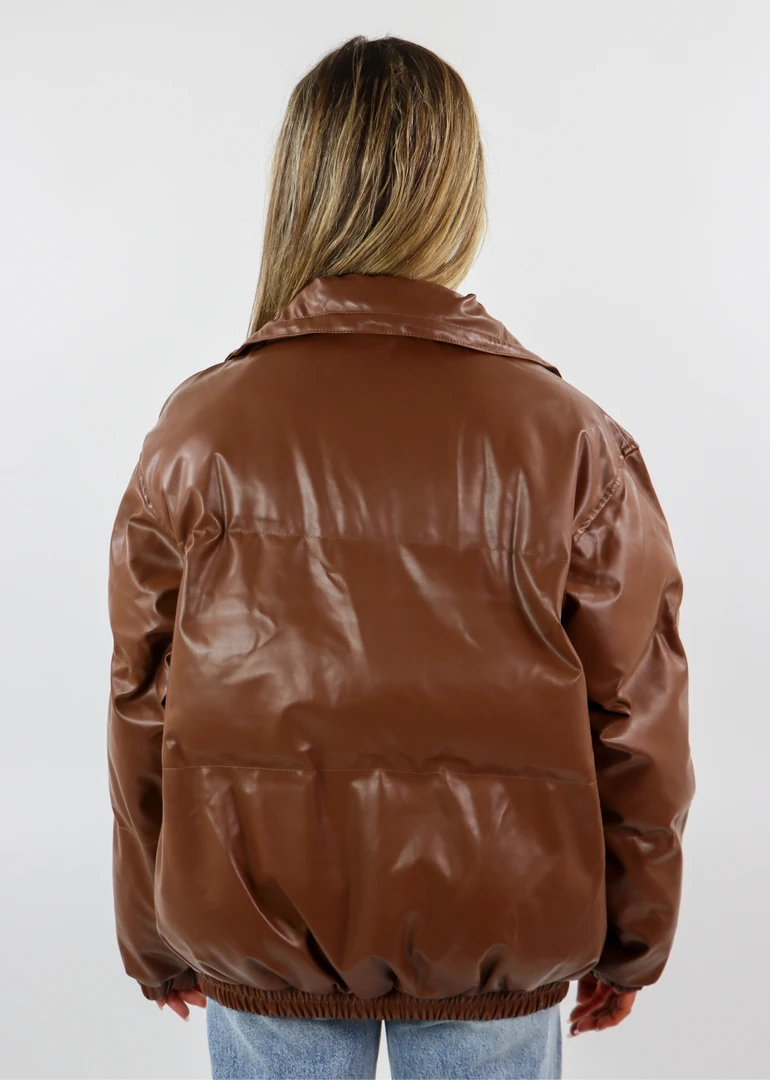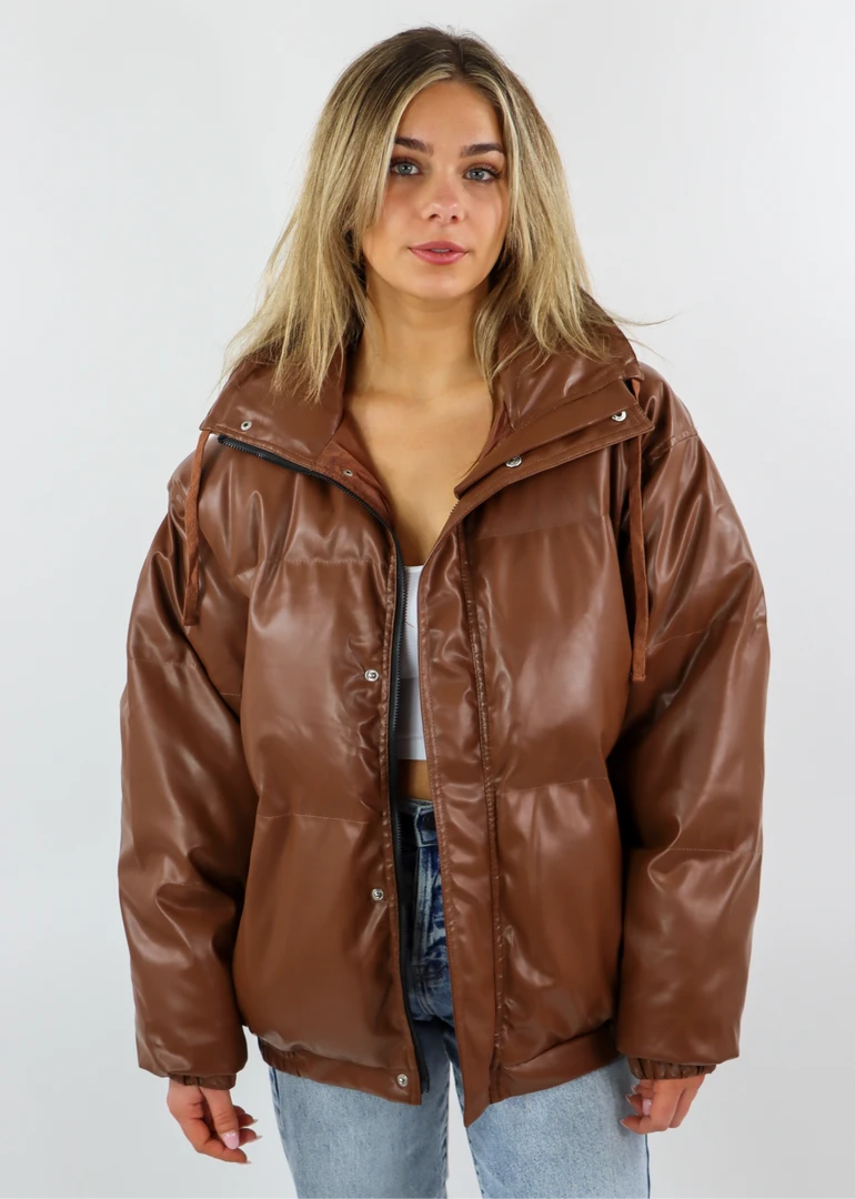 We are obsessed with this puffer jacket! It’s such an easy throw on jacket that is guaranteed to elevate your look and keep you warm. This faux leather jacket features a zipper and 5 button closure with two front pockets. It has a drawstring mock neck to keep you extra warm with a cinched bottom and wrists. We know you will rock it!