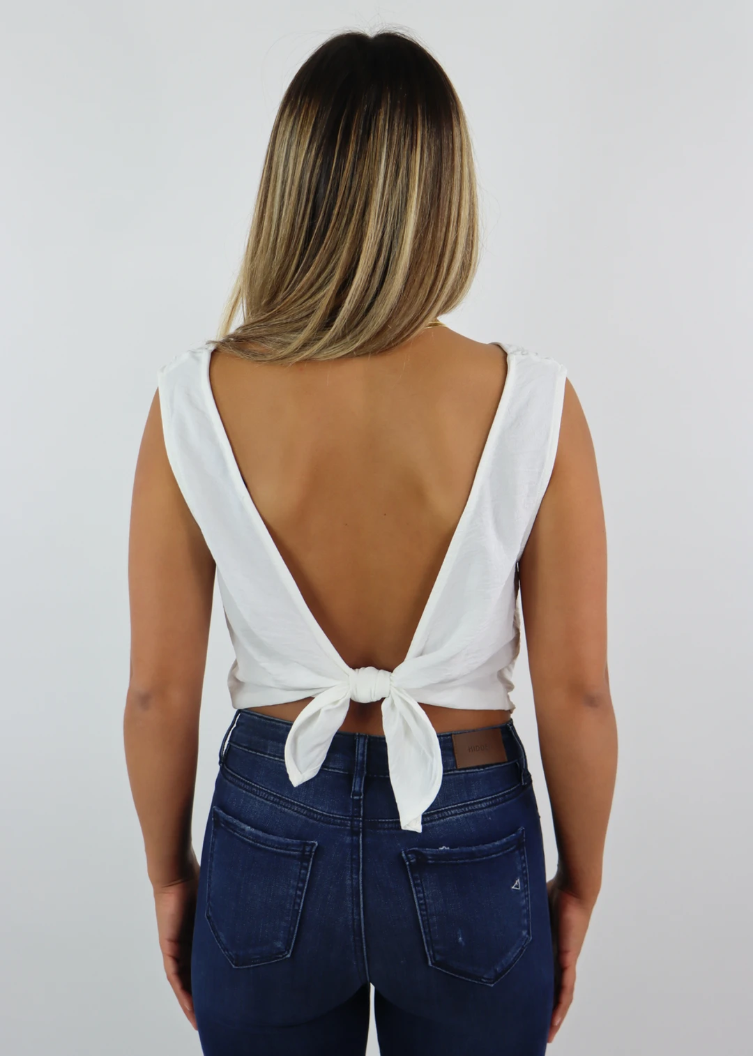 We are obsessed with this white cowl neck tank top and know that you will be too! It features a tie detail open back and is slightly cropped. The fabric is so flattering, we know that you will rock it!