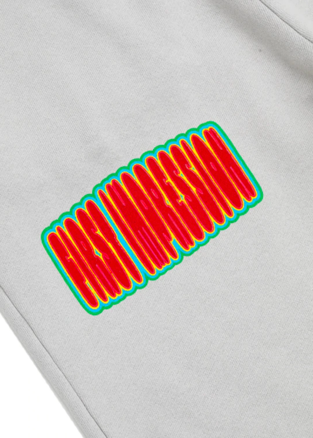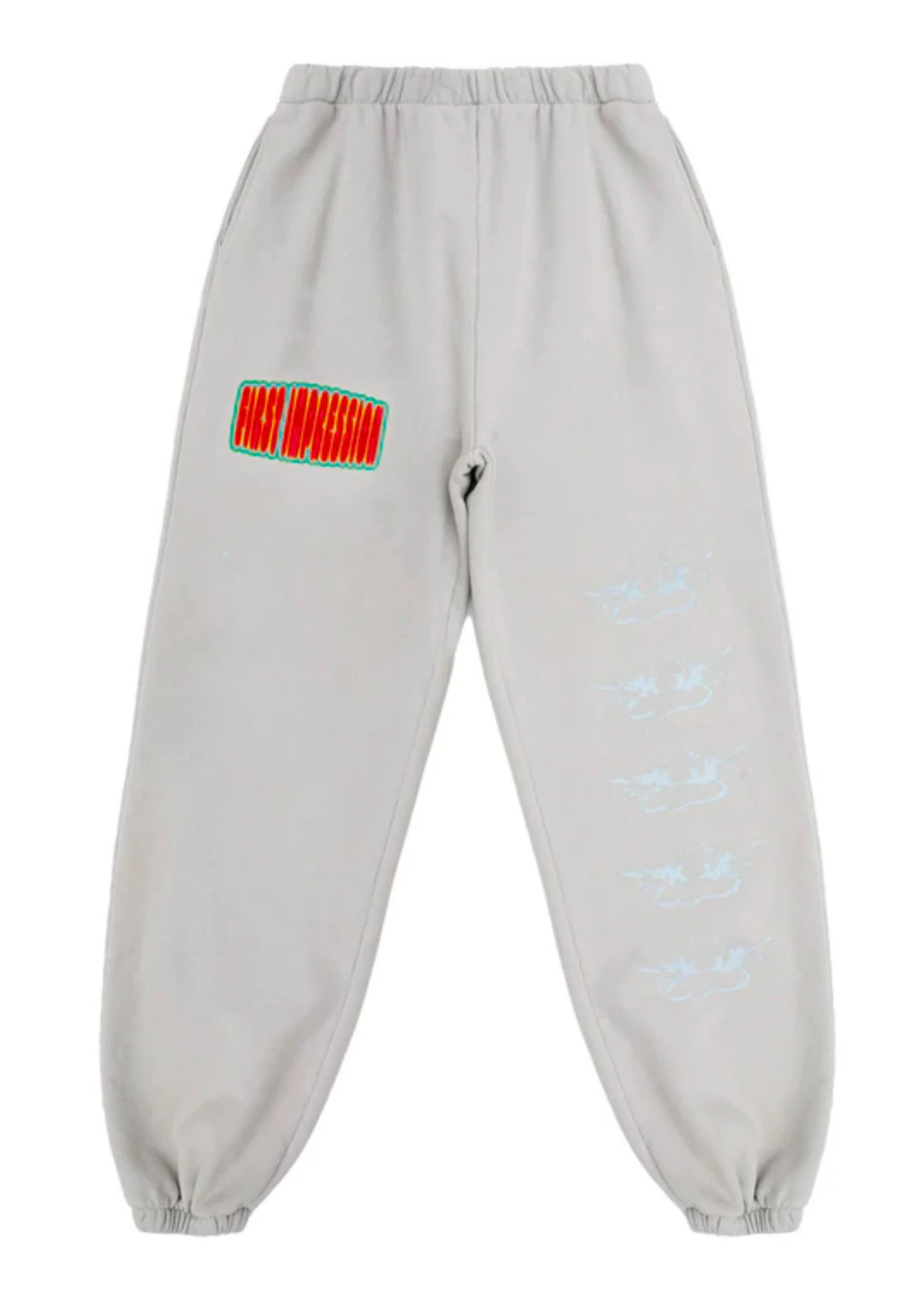 We are loving these Boys Lie grey joggers! They feature a “First Impression” graphic on the front right leg and handprints on the butt.