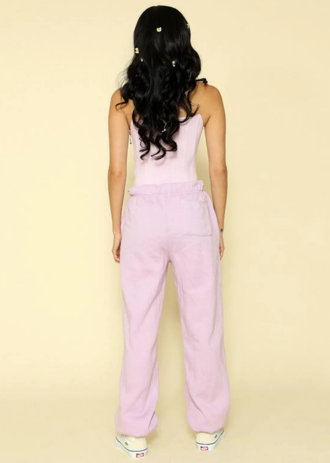 These are the perfect sweatpants but way more trendy! They are a must to add to your Boys Lie collection. These sweats are so comfortable you will not want to take them off! These high-rise oversized sweatpants feature a gold cherub snap button and have a gathered elastic waistband and cuffs at the bottom.