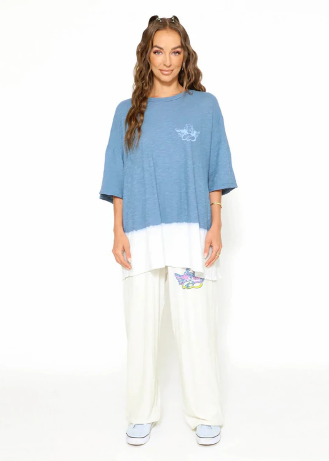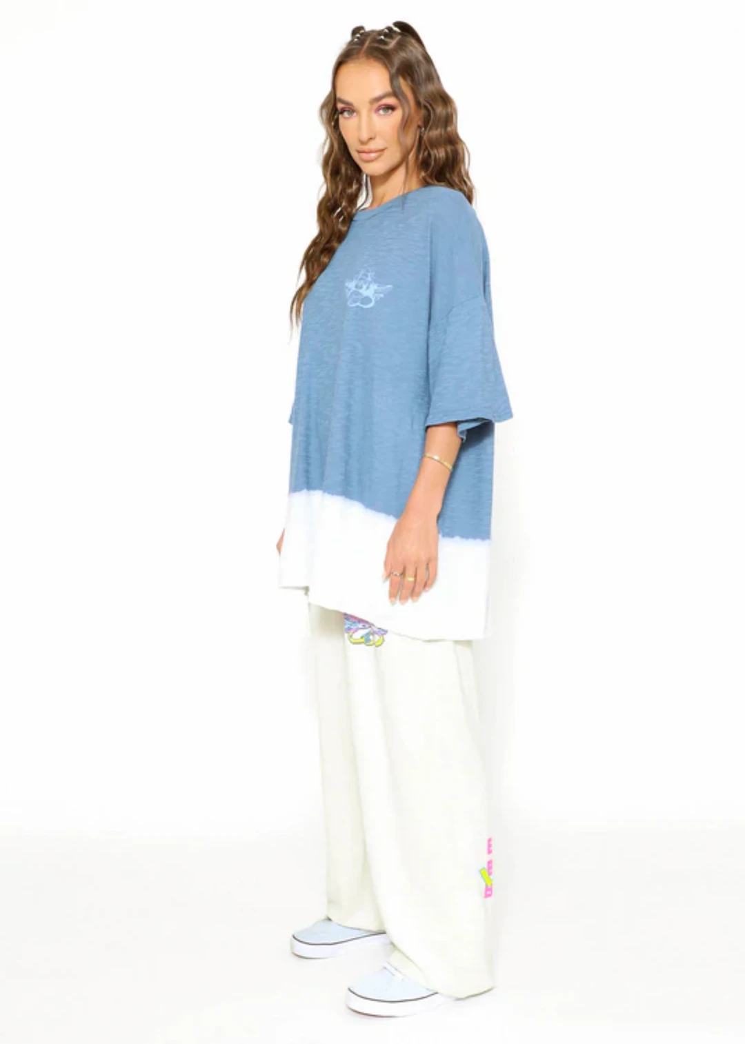 Everyone deserves a little sweetness in their life. It features blue and white dip dye on a lightweight tee in cotton slub jersey material. This shirt is so unique and cool each item is hand dyed and may show slight color variations.