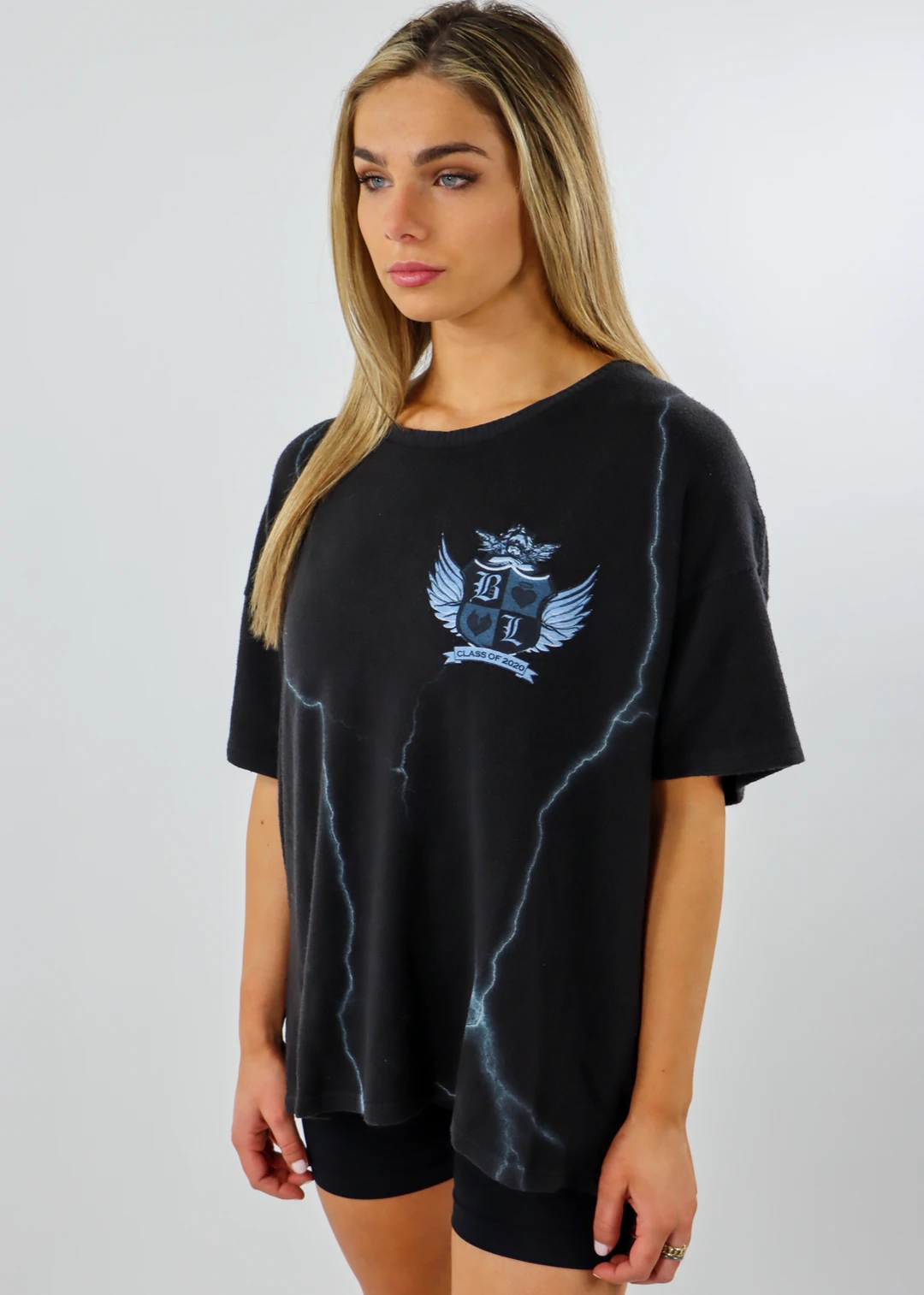 We are obsessed with this heavyweight University Tee! It has been enzyme washed to pill to create the perfect vintage look and feel. The front left features a class of 2020 logo and on the back there is a graphic of four different angels. This tee is so comfy you won’t ever want to take it off!