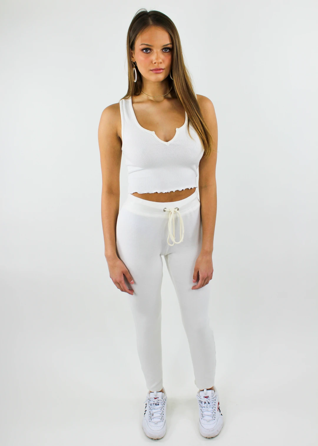 Closet Essential: White comfy sweatpants. These are literally the softest material you will ever feel – We promise you will live in them as soon as they arrive!