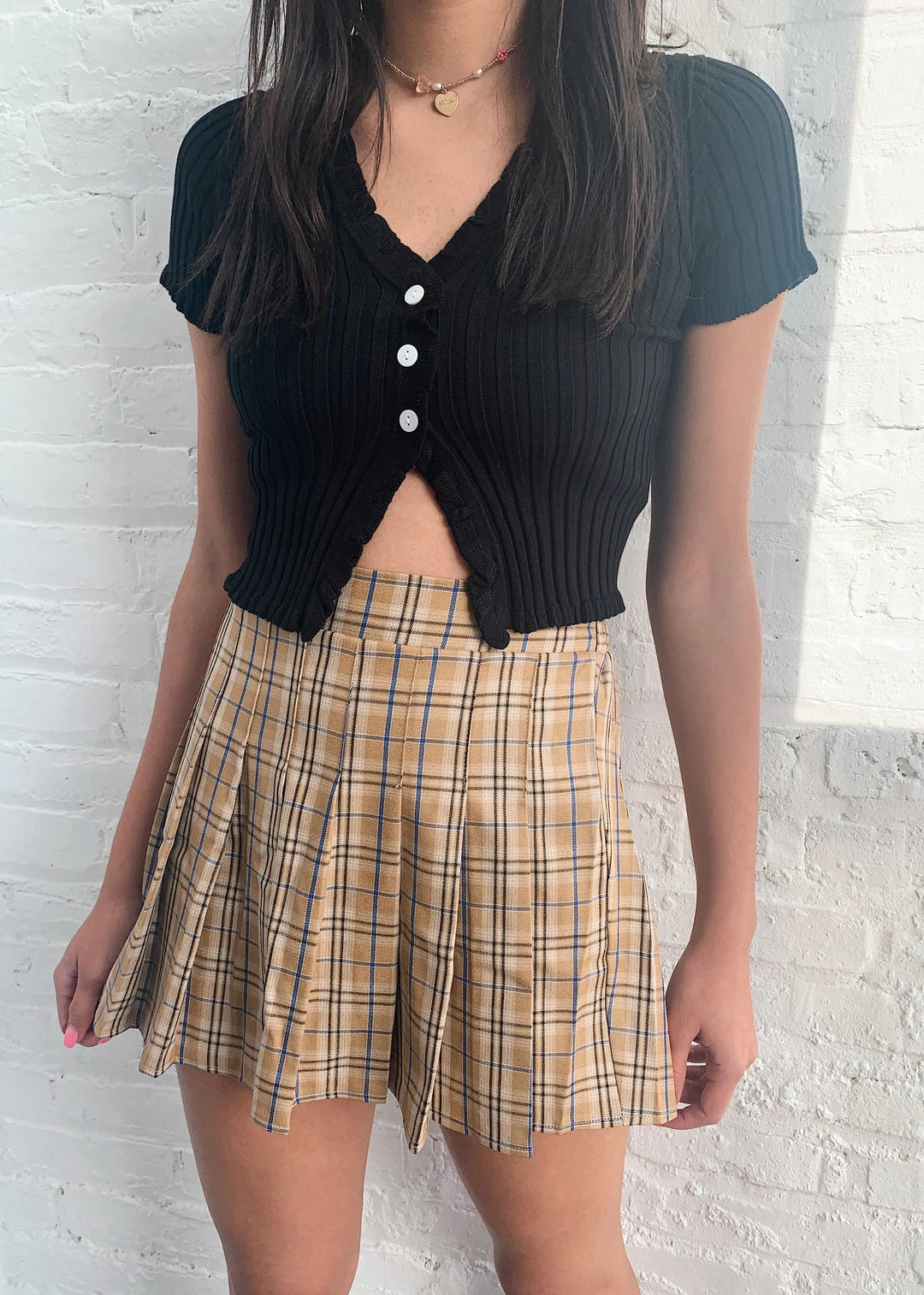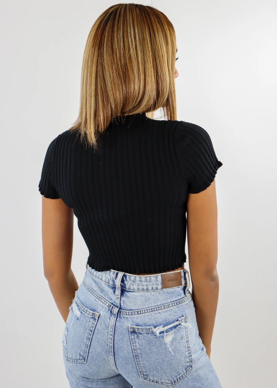 This short sleeve cropped sweater is everything for Fall! This type of top is so on trend, it will having you looking amazing! It features a lettuce edge trim, a 2 button closure and has a stretchy ribbed material.