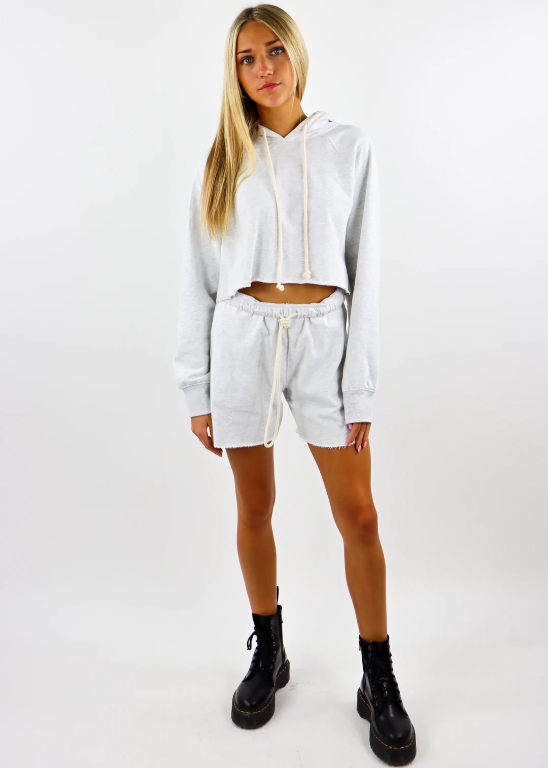We are literally living in this hoodie! It’s so comfortable and the perfect thing to throw on without even thinking! This cropped hoodie features a draw string adjustable hood. Pair it with the matching Better Together Sweat Shorts ★ Grey.