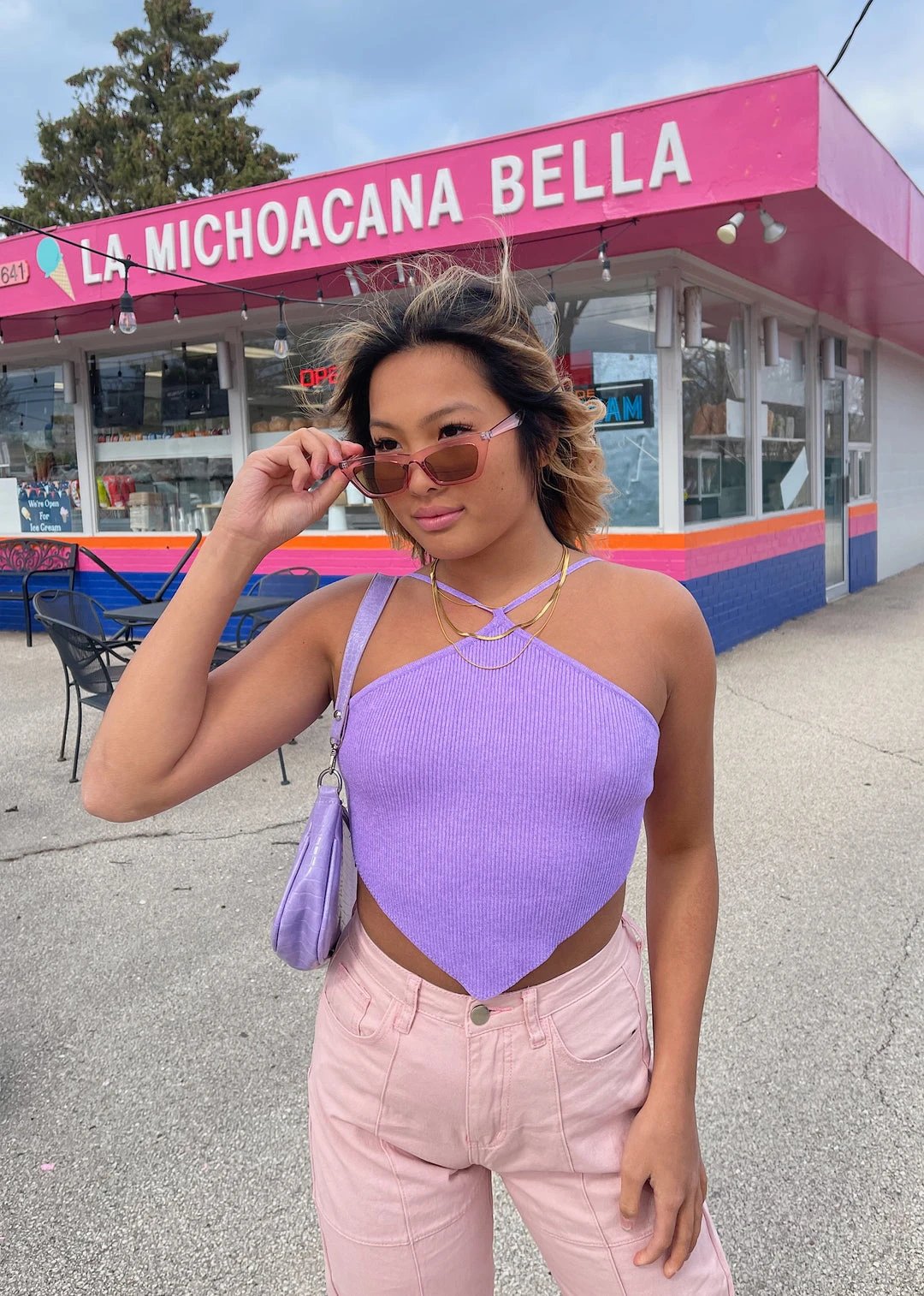 This crochet purple halter top is our new favorite top! It features a pointed hem that is not only cute but so flattering. This top is the perfect closet essential and could be styled in so many ways! Pair this top with a pair or boyfriend jeans or a skirt for a dressed down or dressed up look. We know you will rock it!