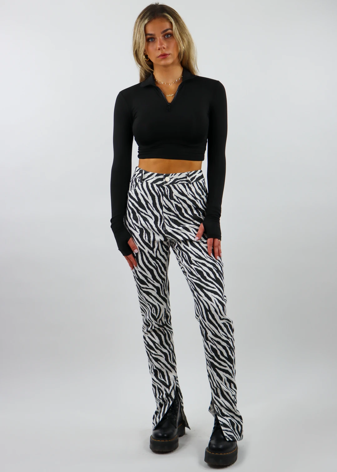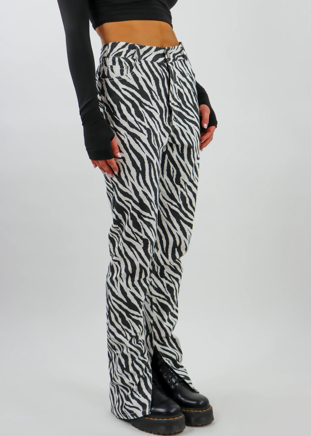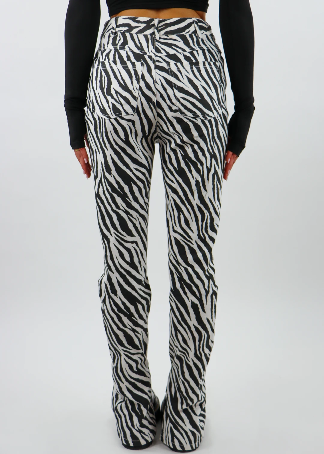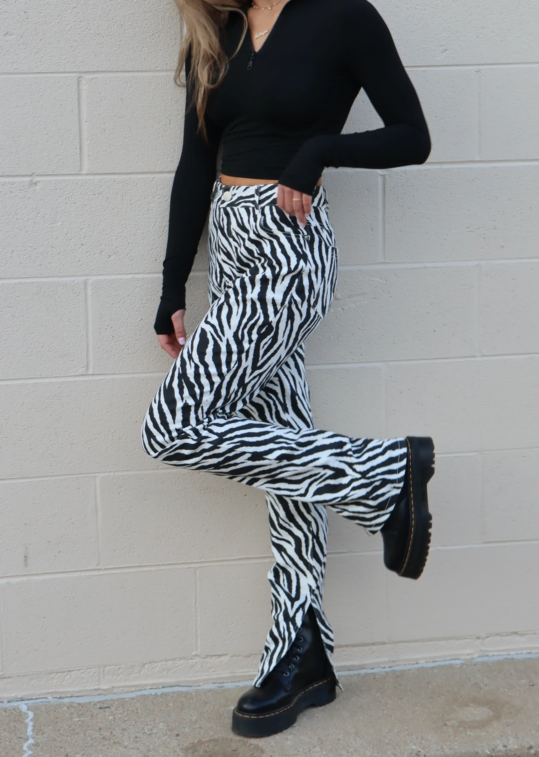 You won’t want to pass on these zebra print jeans! It features a slit hem bottom giving it a flare leg look. Pair it with a basic crop top and sneakers for a fun look. We can’t wait for all eyes to be on you in these jeans!
