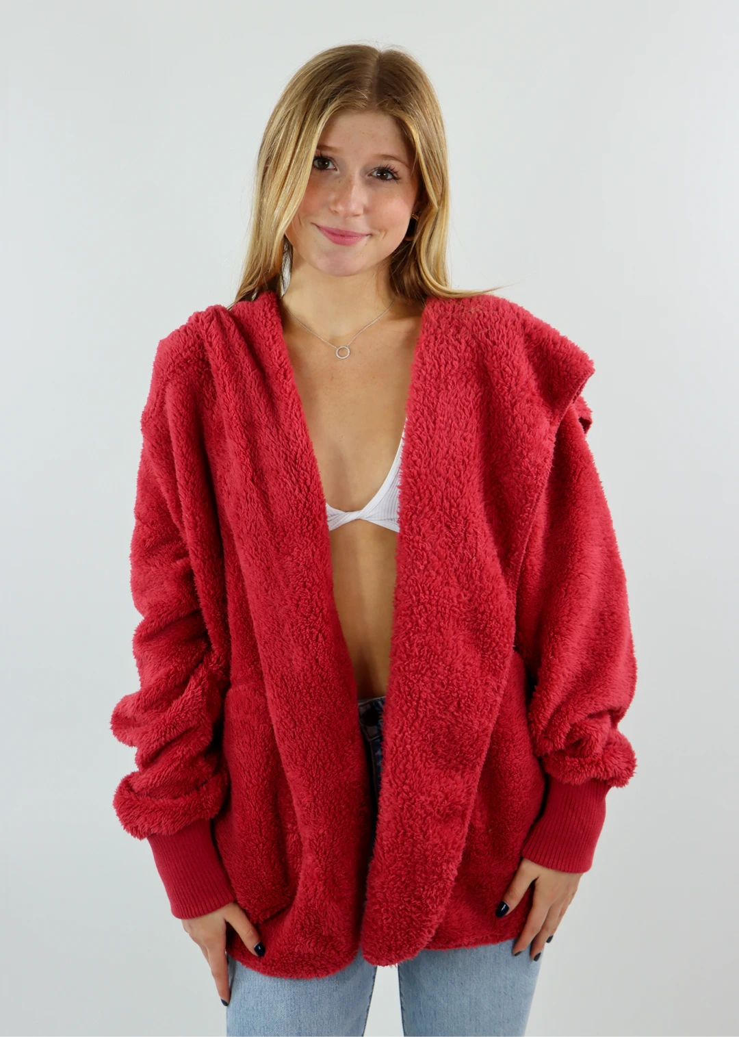 Warning: Once you put this fuzzy jacket on, you’re never going to want to take it off! This hooded cardigan jacket is soft and furry on both the outside AND inside for maximum comfort. It includes pockets on each side, a hood, and fitted knit sleeves at the wrist. One word: OBSESSED.