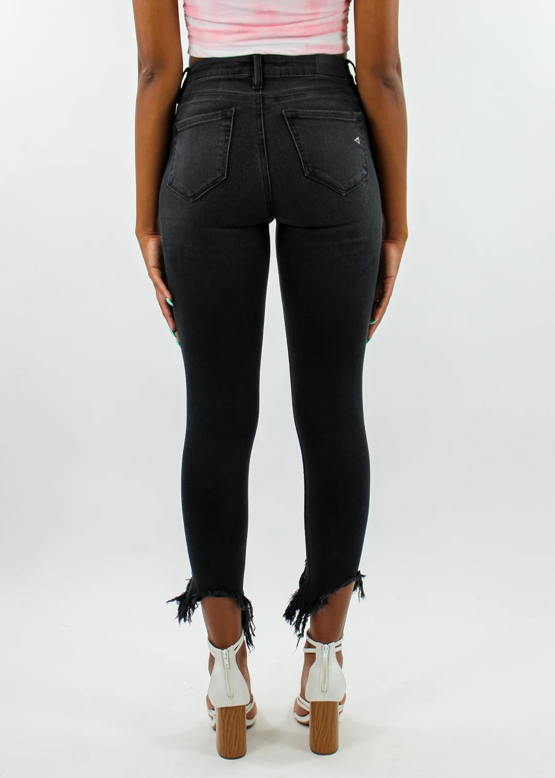 These jeans are an absolute necessity for your Fall/Winter wardrobe. With a high rise fit, stretchy fabric, and the cutest distressing at the ankles, pair these with any of your favorite tops for the perfect look to take you from day to night. They have 5 pockets and a zip button closure at the waist.