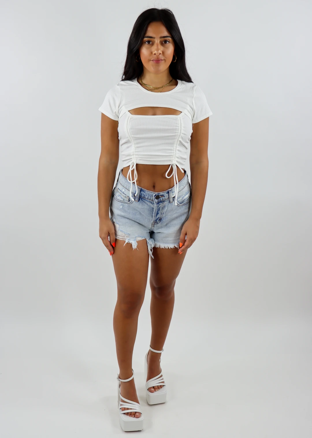 Get ready to turn heads and be THAT girl in our Love On The Brain Top! We are living for this amazing crop that has everything that you are looking for! It features ultra cute ties which can be adjusted to give more of a cinched look or simply tied into a bow! It also features cap sleeves and a cutout that makes this top unlike the rest! Dress it up for a night on the town or dress it down for a nice day outside, either way you’ll be loving every minute in this beautiful piece! Complete the look with the XO Jean Shorts ★ Medium Wash.