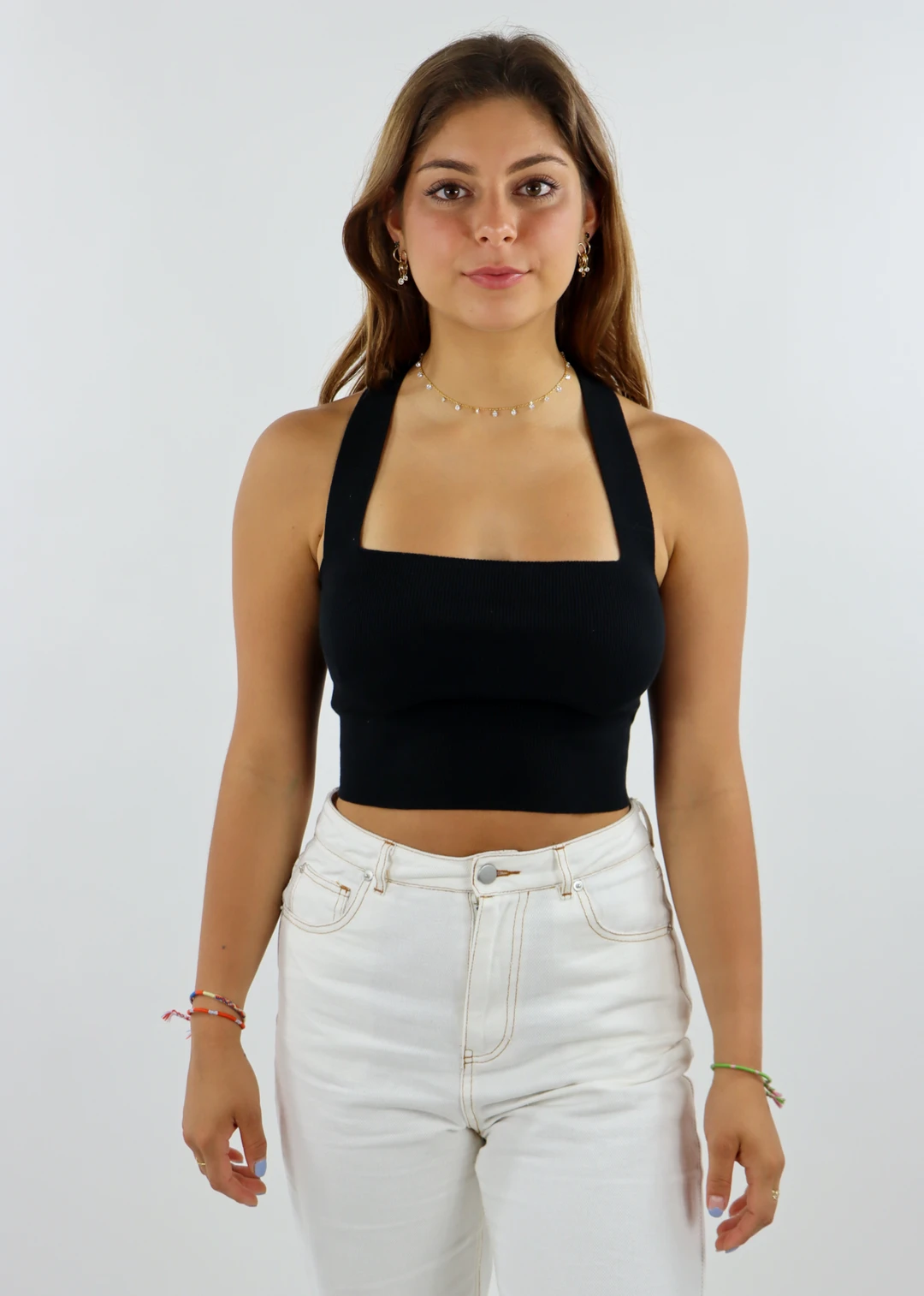 This black crop top will be your new favorite going out top! It features thick straps and an open criss-cross back. It will leave you feeling sexy and chic. Dress it up with a skirt or dress it down with a pair of jeans. Complete the look with our Morocco Straight Leg Jeans ★ White Denim.