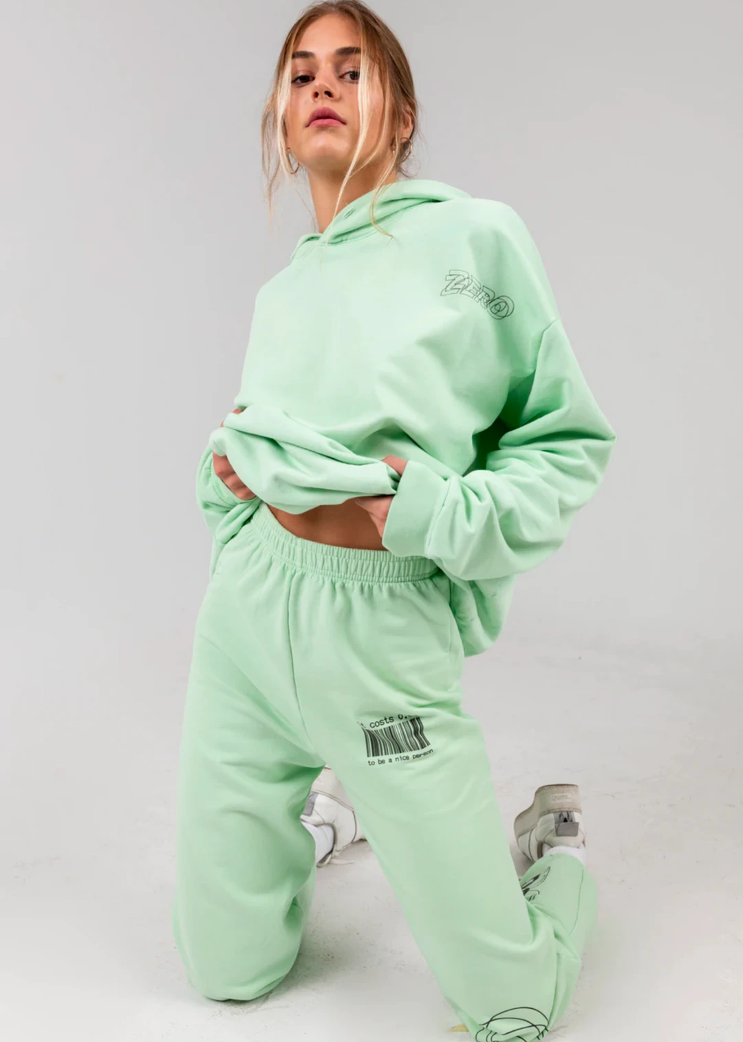 We are loving these Mayfair It Costs $0 To Be A Nice Person Sweatpants! It features ‘Zero’ and barcode graphics on front of left leg and ‘Dollars’ graphic on back of left leg. These sweatpants are the perfect comfy and cute piece to add to your loungewear collection!