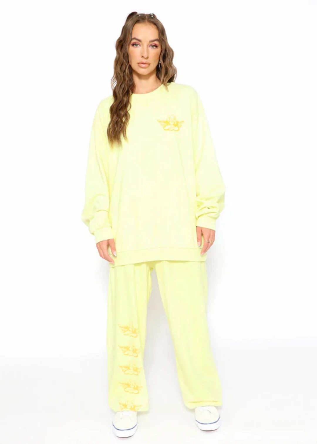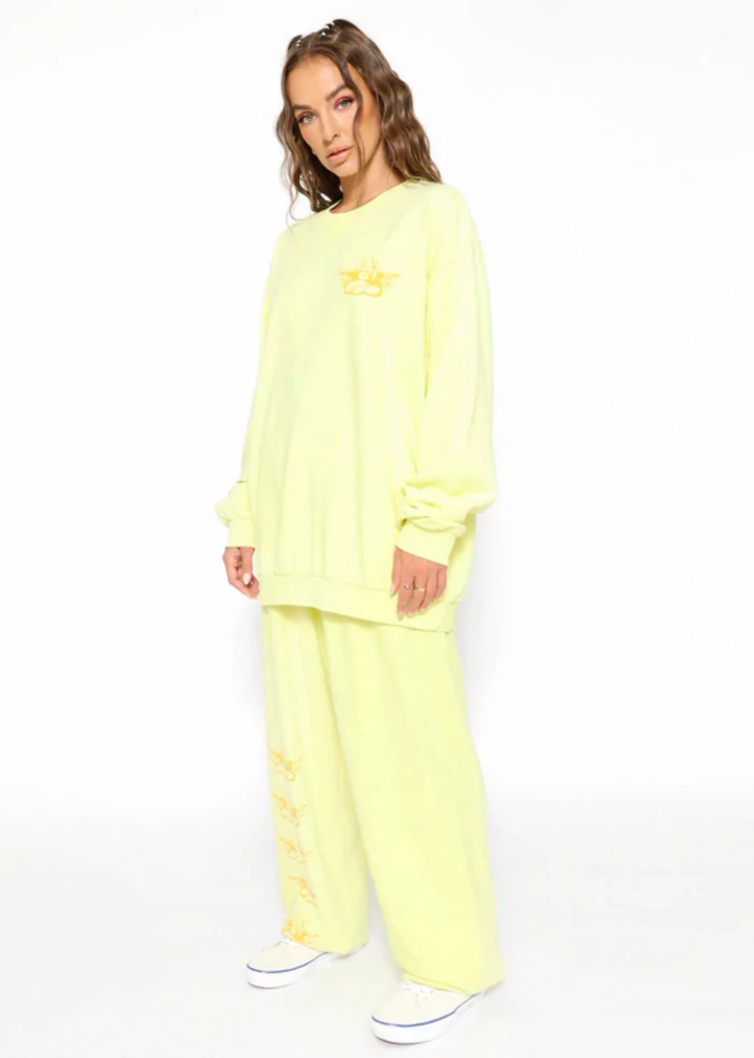 Liar liar pants on fire! This light yellow lightweight fleece fabric crewneck feature an oversized fit and ribbed cuffs and neckline. It also feature the Boys Lie logo on the front and a graphic on the back. This crewneck is so comfortable and cute, we know this will be your next favorite crewneck!