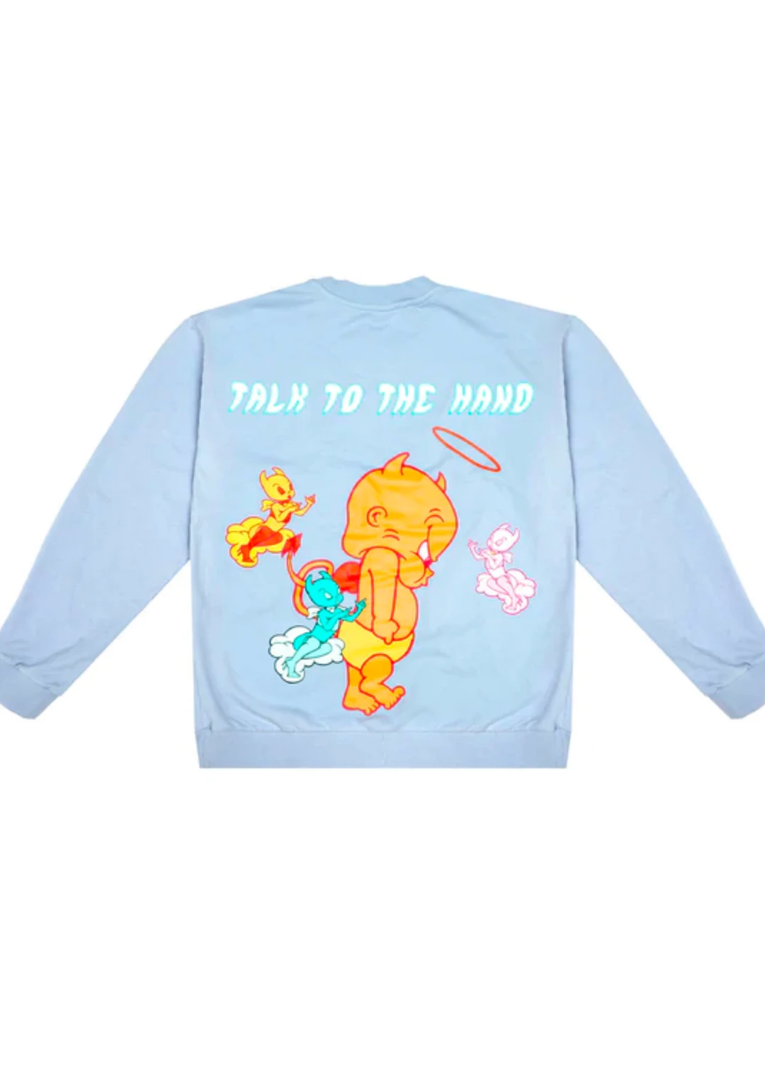 Talk to the hand. This oversized lightweight fleece crewneck features ribbed cuffs and neckline. It also features the cutest devil graphic on the back with the words “talk to the hand” and the Boys Lie logo on front. We know this will be your next favorite crewneck!