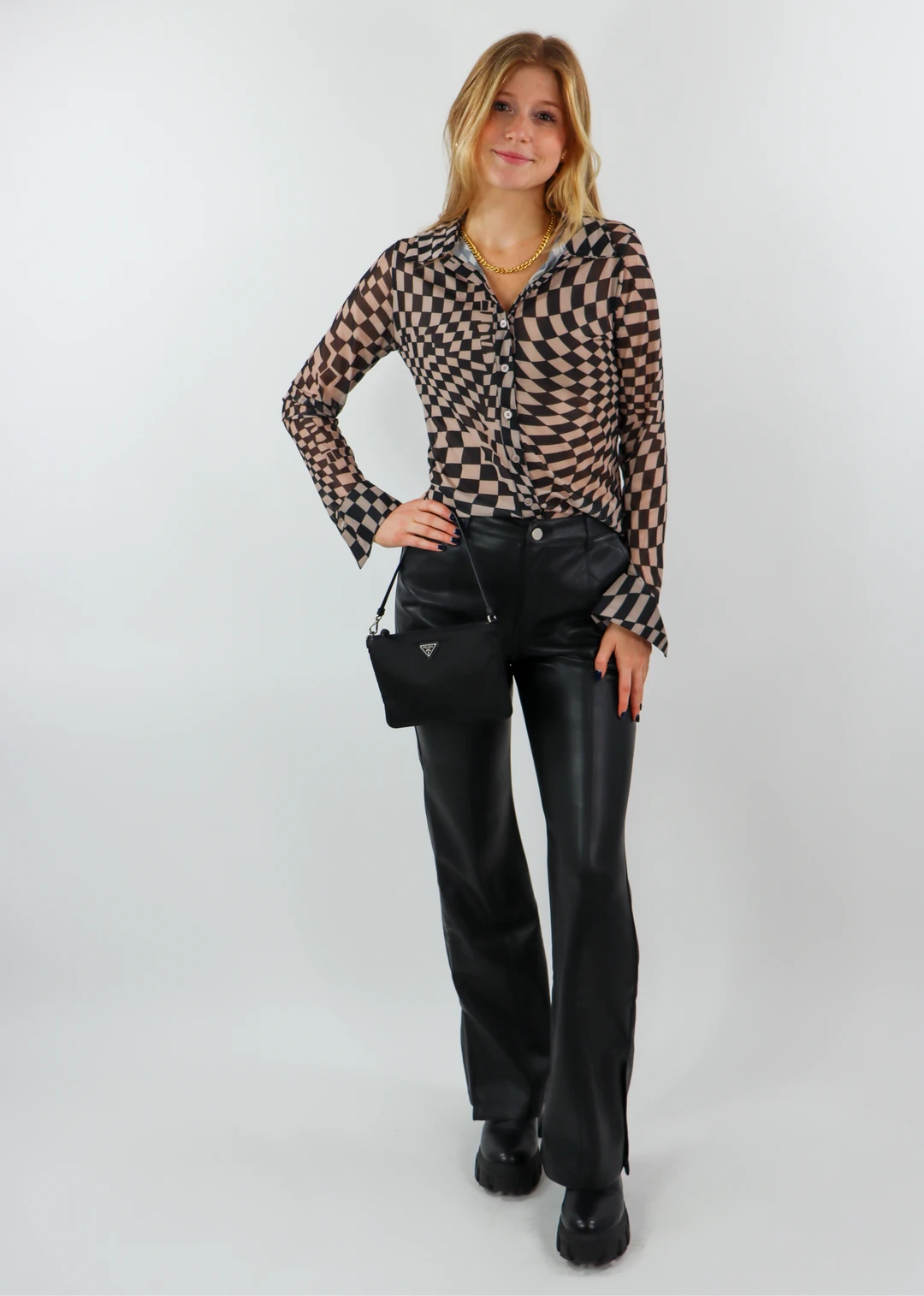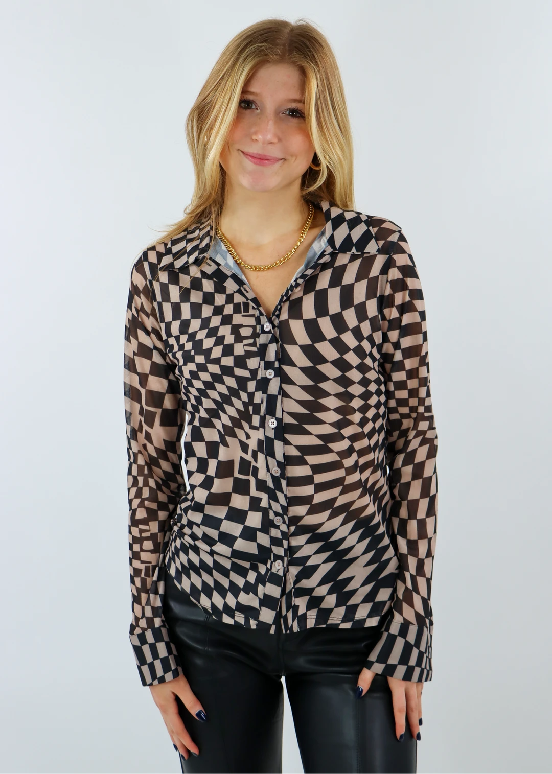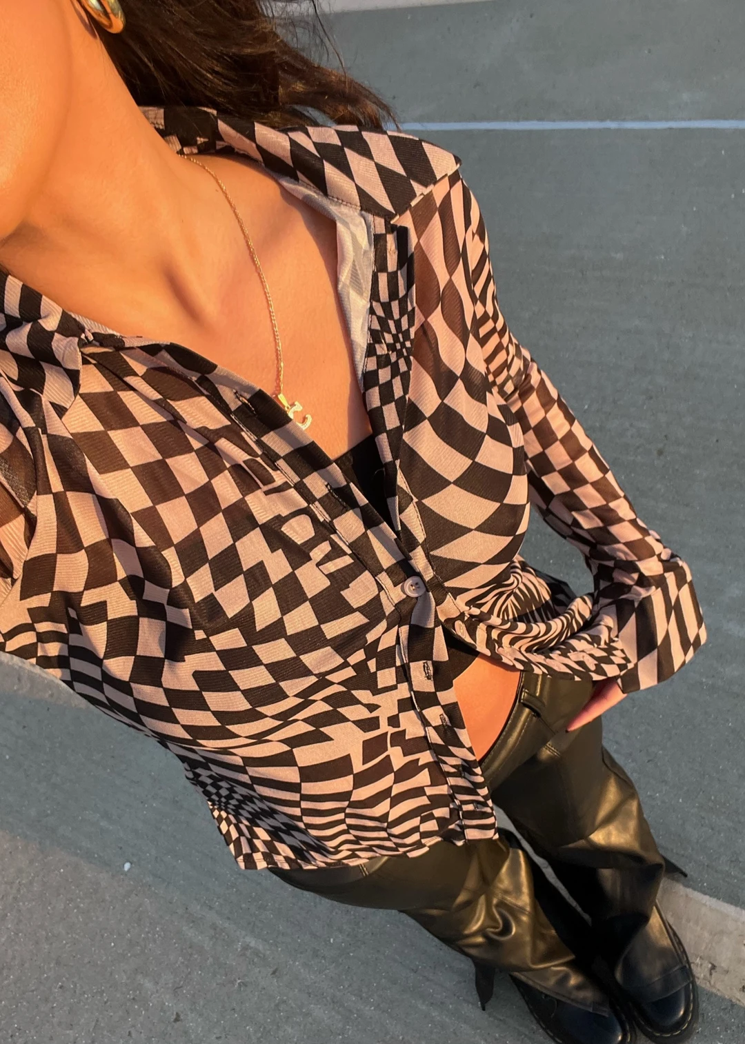 This sheer checkered button-down is going to be your new best friend! The psychedelic checkered is so trendy and will automatically take your outfit to the next level. We love how you can throw this on over a bralette or crop top and either button it slightly or leave it open. This top is so versatile and we know you are going to rock it!