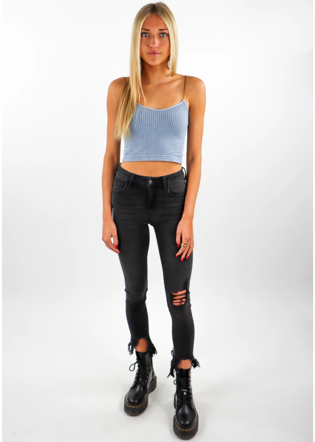 Whether it’s your throw on basic top or a stylish cropped workout tank, this adorable waffle tank is a must have!