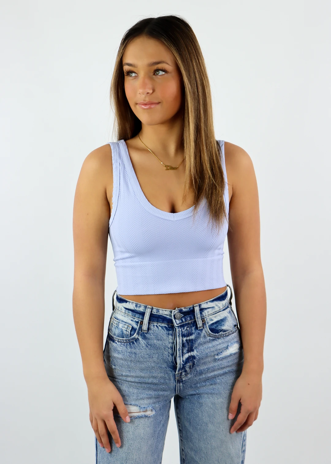 Our two best-selling tanks combined into one! This ribbed knit V-neck neck crop tank is the best essential for your everyday outfits. Featuring a subtle chevron texture and the most amazing stretchy yet supportive material, this tank will have you feeling cool and confident.