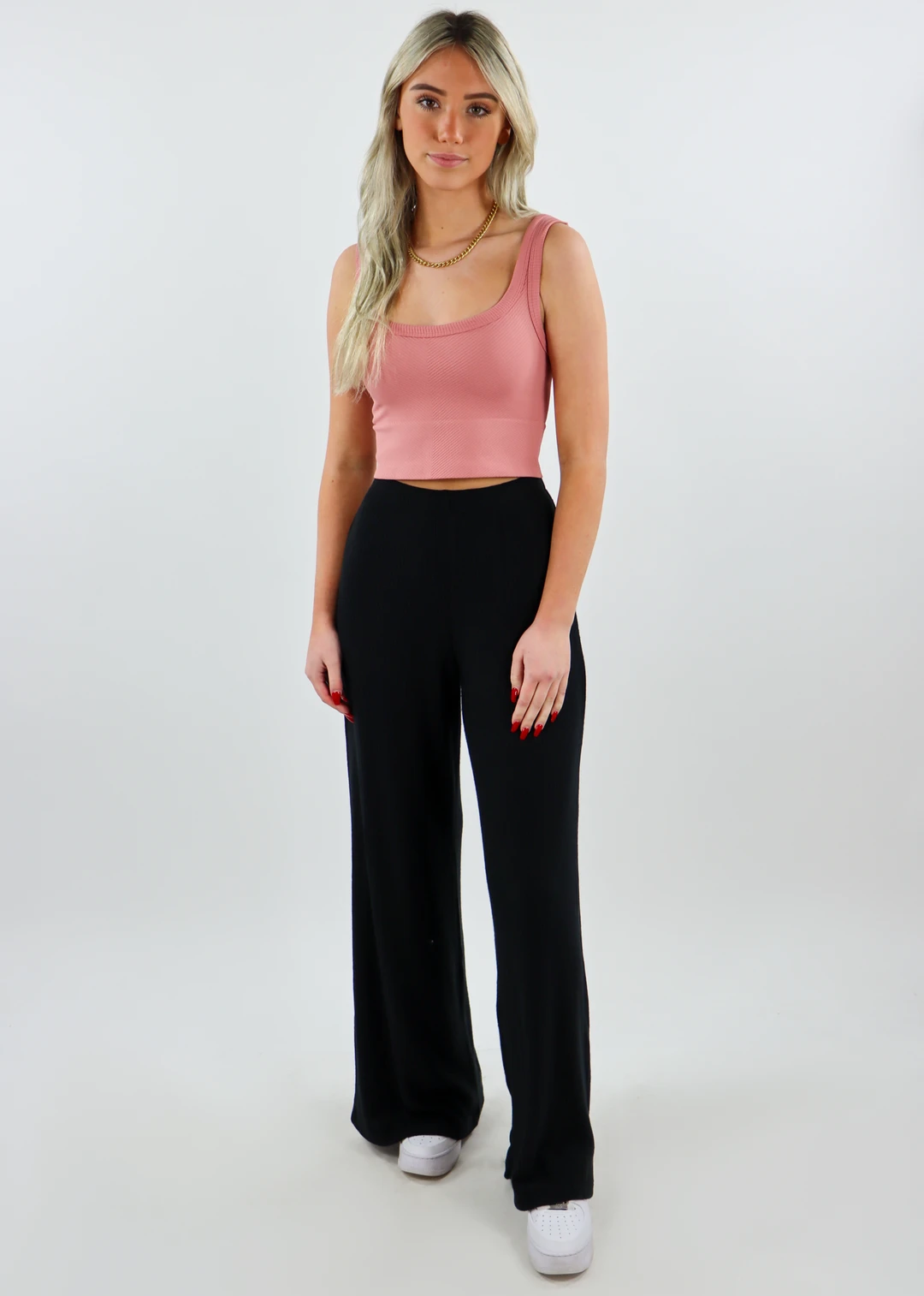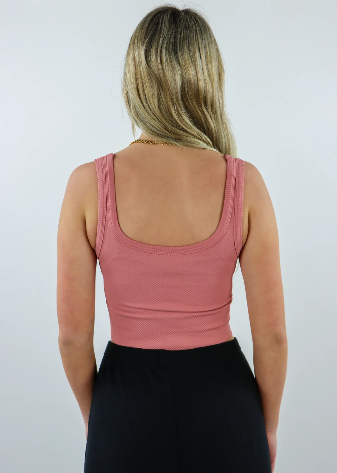 Spill The Tea Babe! This ribbed knit scoop neck crop tank is the best essential for your everyday outfits. Featuring a subtle chevron texture and the most amazing stretchy yet supportive material, this tank will have you feeling cool and confident.