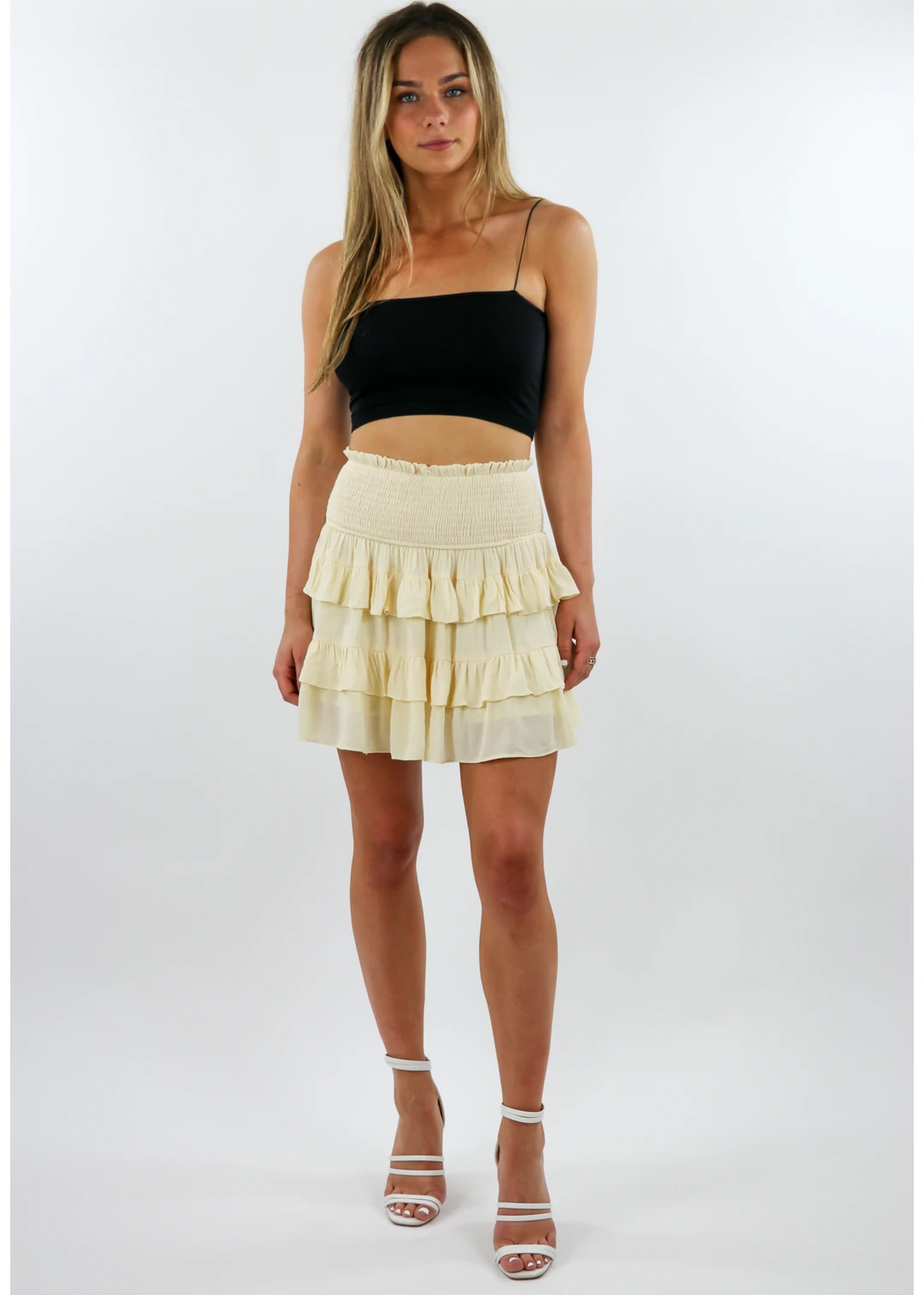This skirt is our favorite on this drop! The cinched waist keeps it super cozy while looking gorgeous on everyone. We recommend wearing it high waisted. This skirt also comes fully lined! Pair with our favorite Take the Plunge V-Neck Crop Top ★ White.