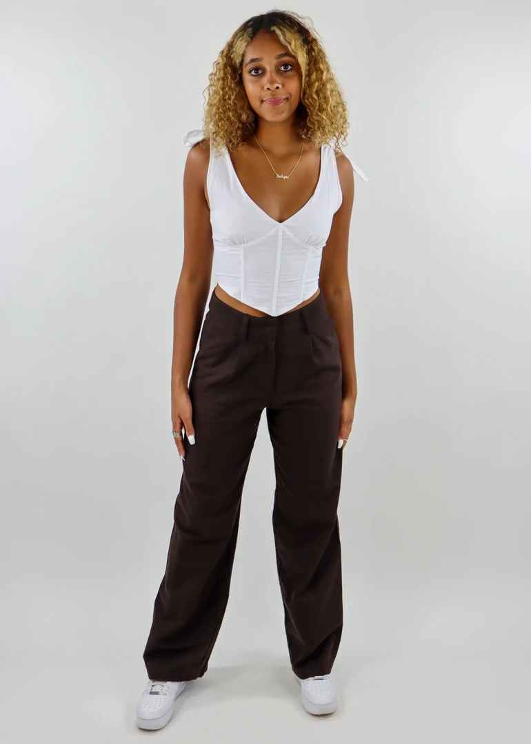 This is the ultimate cottage core corset top for the summer. It features a plunge neckline, shoulder ties, and a zip-up closure on the back. This top will compliment your body and leave you feeling confident as ever.