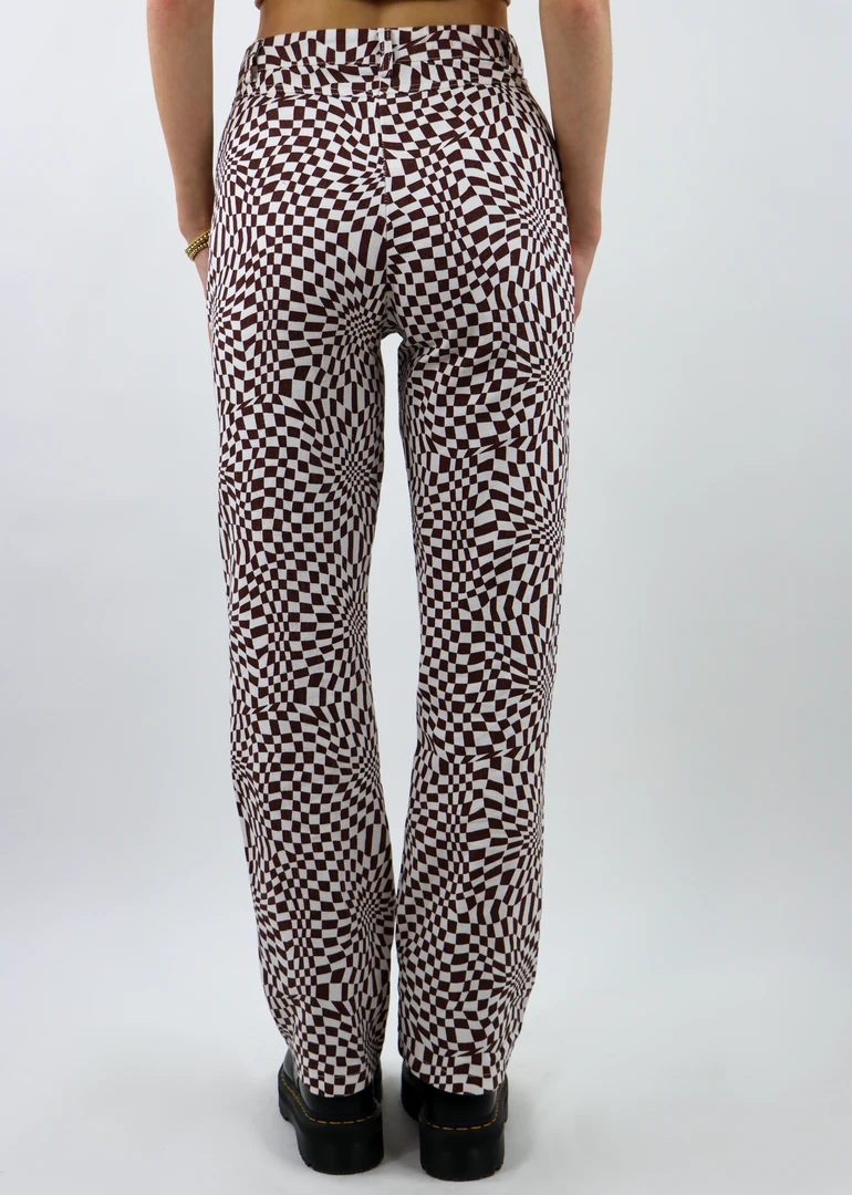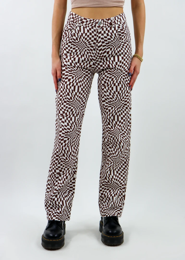 These checkered pants are the 70s moment you’ve been waiting to add to your closet! The brown & white psychedelic checkered design throughout makes these pants the perfect statement piece. We know you are going to look like the coolest girl in the room when you wear these! They feature a straight leg and high-waisted fit along with five pockets. Make sure to pair them with an oversized chunky sweater for those colder days or a crop top for going out!