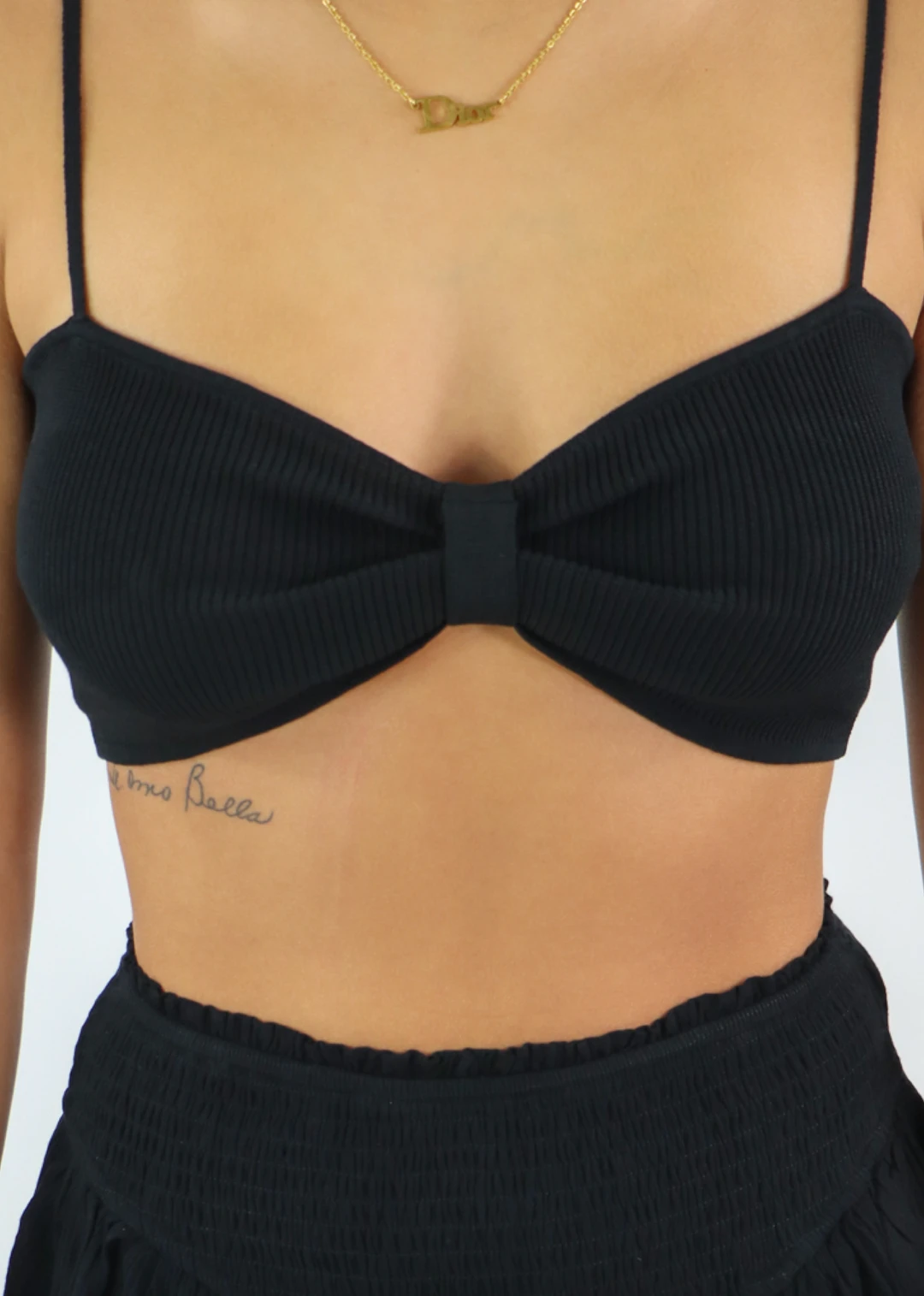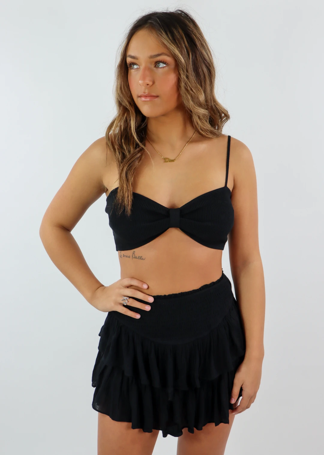 This black crop top is the perfect essential for your wardrobe! It features a knit ribbed material that is so comfortable you’ll never want to take it off! This top is perfect to style with skirts and high waisted pants or shorts for the warmer months. We know you will rock it!
