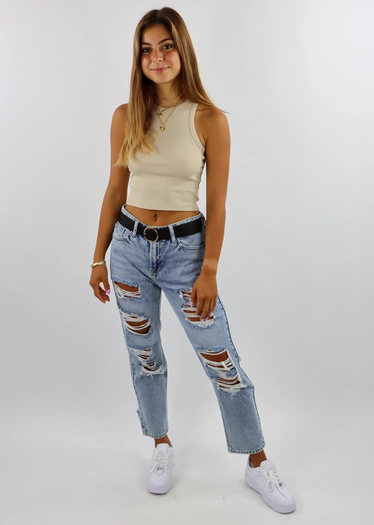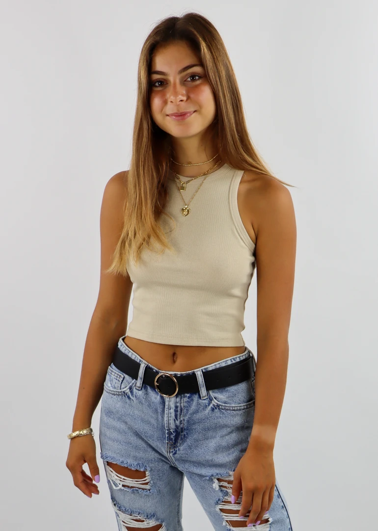 If you ever need a go to tank, this is for you! This high neck cut is so flattering and looks so good on any type of body. It’s the perfect basic to go with anything! Pair this tank with any of our best selling Denim.