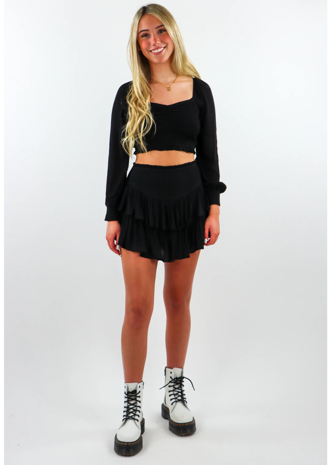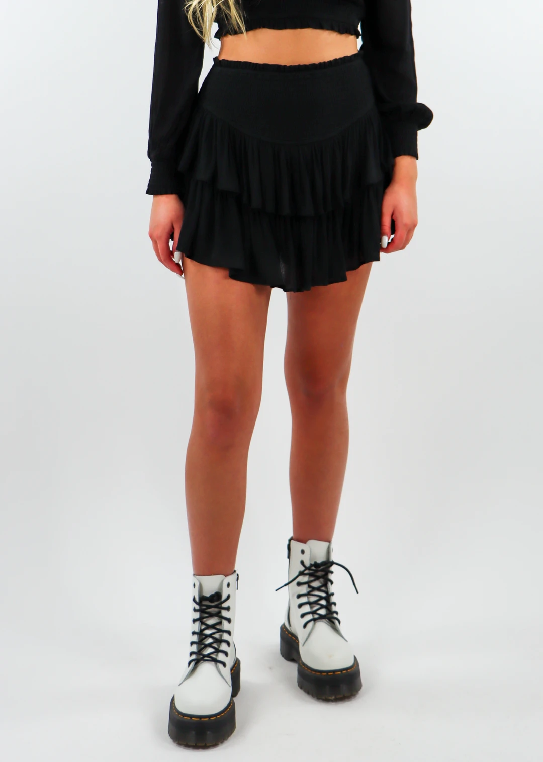 Meet the skirt right out of our day dreams. The first-ever Rock N Rags piece is back, and what better way to be than with the gorgeous Black Sunshine Daydream Skirt! This is an absolute must-have piece that fits for any occasion!
