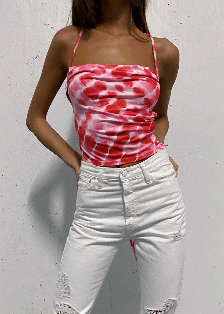 Couldn’t be more obsessed with this Totally Groovy Tank! This top is the perfect mix of fun and sexy. It features a cowl neck and an open back with a criss-cross tie detailing.