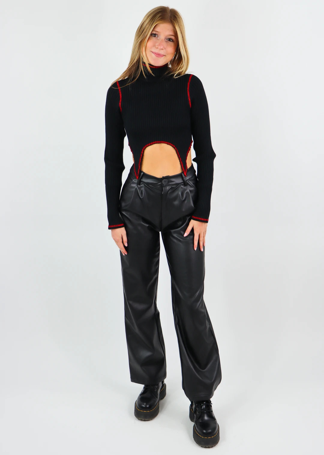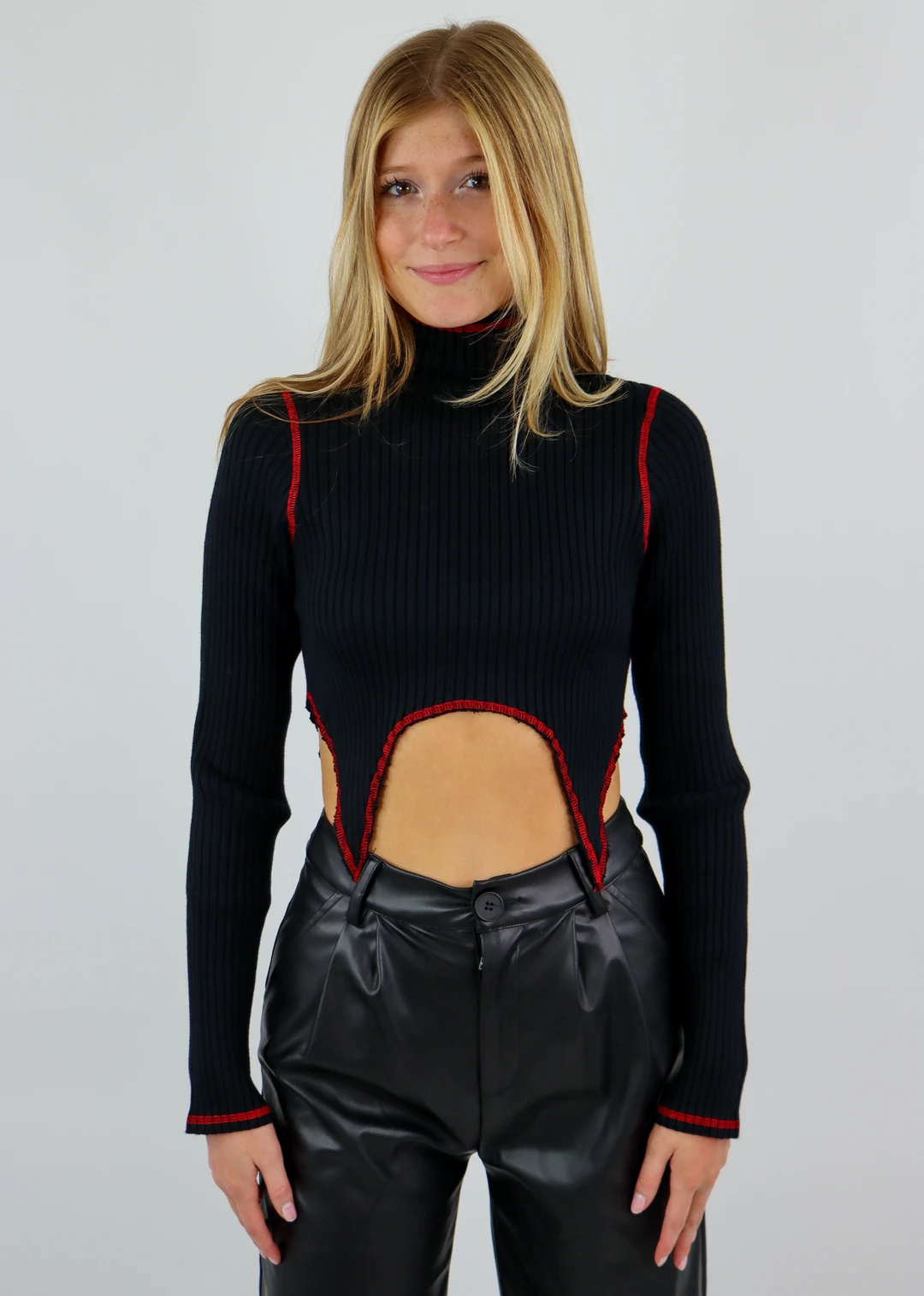This is the coolest sweater ever and we are obsessed! This black turtleneck features red exposed seam details and a curved hem that makes this top so cool and trendy. It is the perfect mix of edgy and cute that could be styled in so many ways. Style this top with a pair of leather pants or dark wash jeans and black boots! It is so versatile and it could be worn to class or going out with friends! However and whenever you wear it, we know you will rock it!