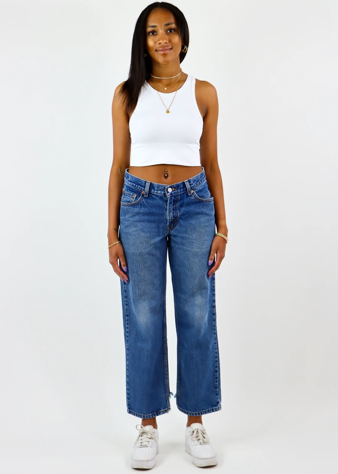 These vintage Levi’s are truly one of a kind, just like you! They have their own unique details which make them stand out from your everyday jeans. We recommend measuring yourself or another pair of jeans that fits you and using those measurements to find your perfect fit.